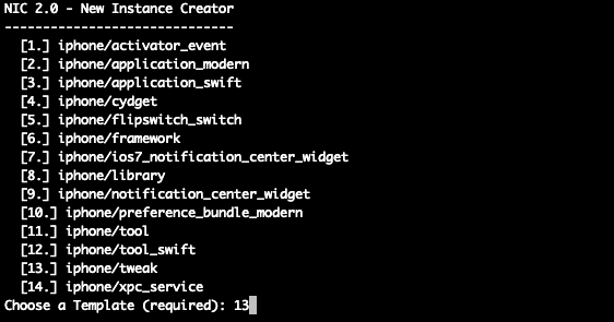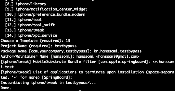 THEOS framework로 프로젝트를 생성시킵니다.