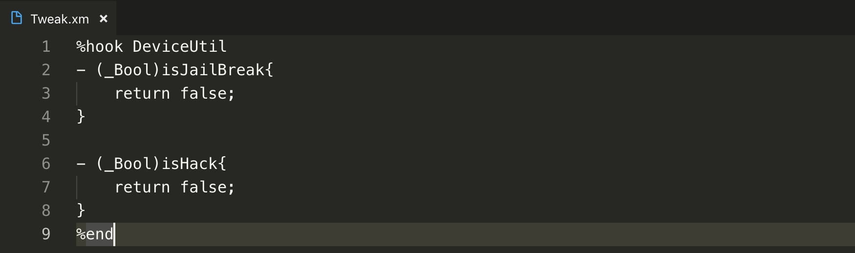 Tweak.xm 파일을 편집기로 열어주시고