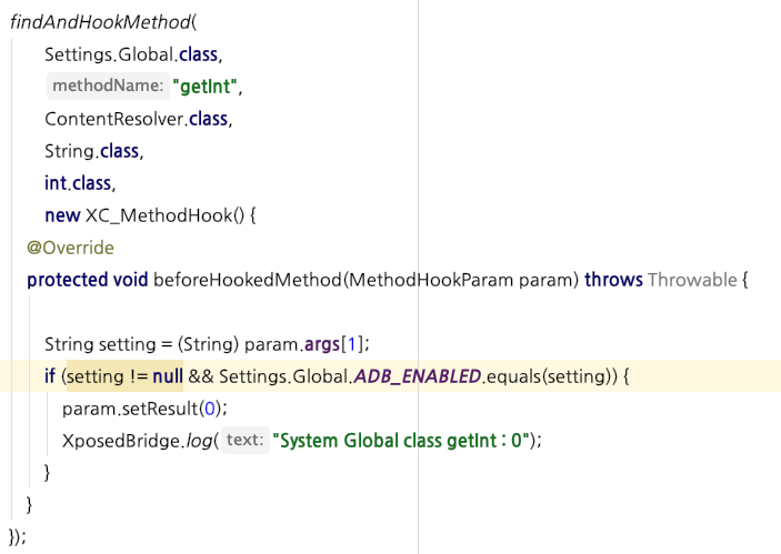 물론 Java의 기본 클래스의 특정함수도 Hooking 해야할 경우도 생깁니다.