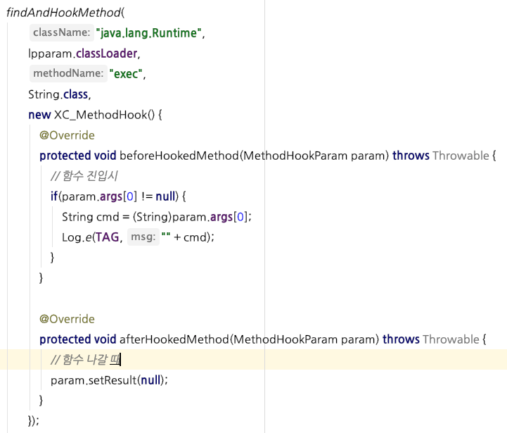 자..... 그럼 Runtime.getRuntime().exec(매개변수) 함수도 Hooking 이 가능하겠죠?